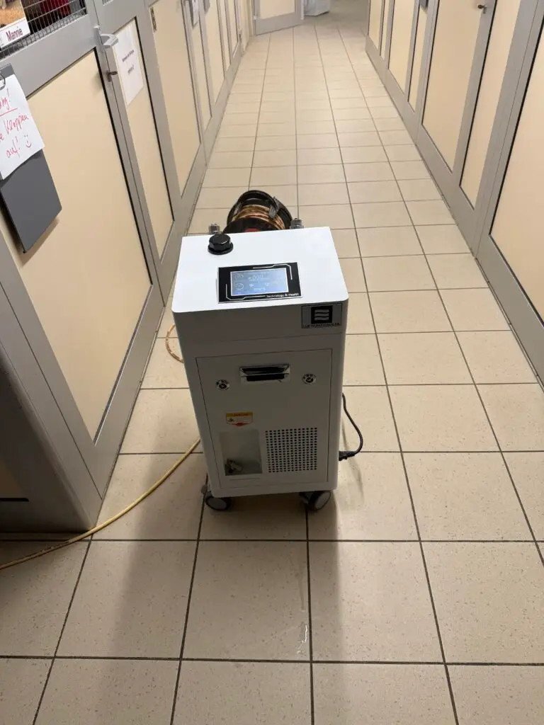 Nach der Testphase hatten wir im Bereich der Quarantäne mit dem Pilz microsporum canis zu kämpfen. Daraufhin hatten wir uns das Gerät gekauft und dort permanent im Einsatz.